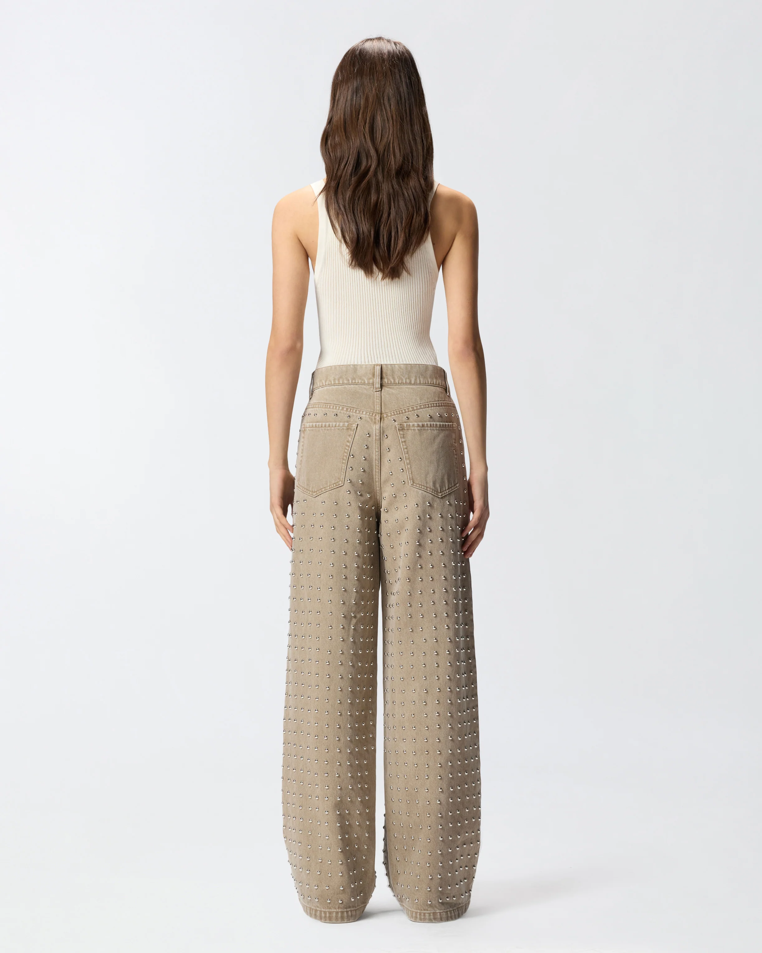 Brown jeans with studs—