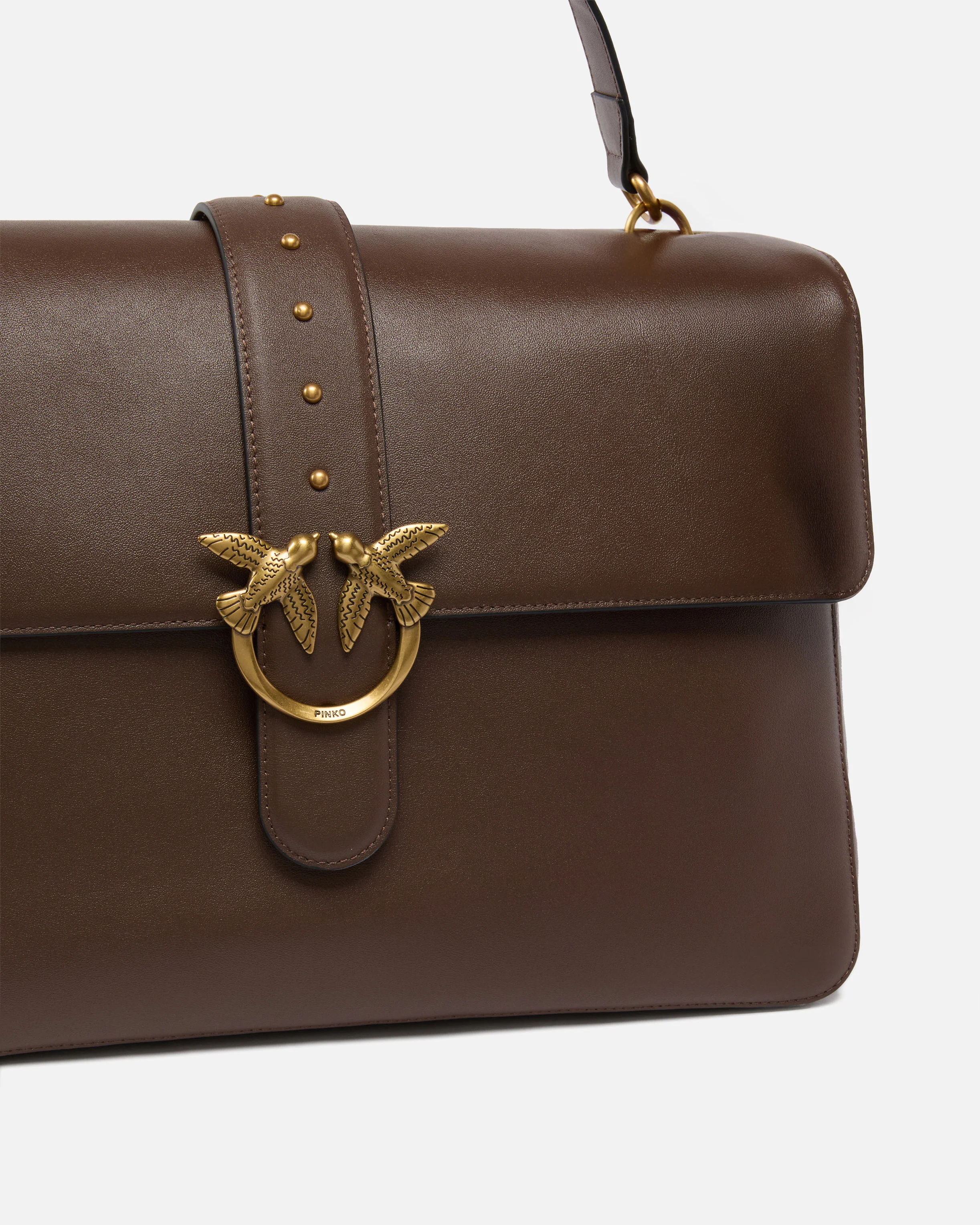 Maxi Extra Love Bag Slouchy shoulder bag with a trapezium shape in soft leather, complete with cotton lining. Featuring by a leather handle for carrying by hand or on the shoulder, the bag is extremely versatile and practical. The small studs give the accessory a bold and personal touch, while the Love Birds Diamond Cut buckle embodies the inimitable style of the brand. Activate your PINKO bag: verify the authenticity of your product and access a personalised experience by scanning the Love Birds embroidery on the back of the bag with your smartphone!