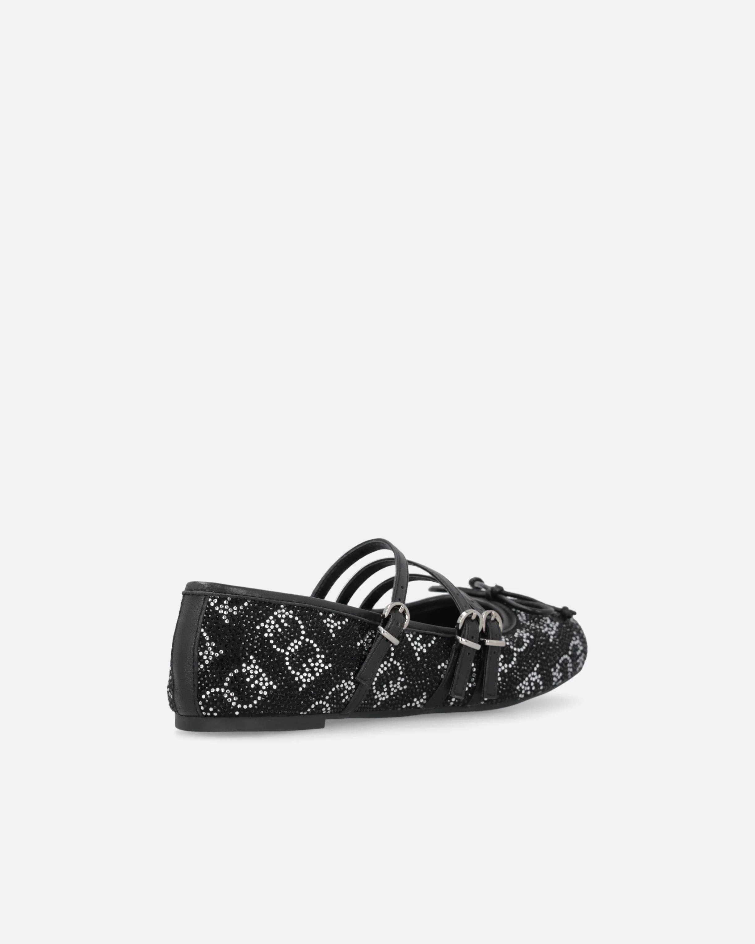 Classic ballet flats, characterized by a flat rubber sole, made of microfiber with a Monogram logo pattern made with rhinestone application, which creates a sparkling and precious pattern with every step. The ballet flats are customized with double adjustable strap on the instep and bow that completes the design with a rounded toe. The lining and insole of the ballerinas are made of leather, and the insole has a 4mm padding that guarantees maximum comfort. Strapped flats are the finishing touch to a sophisticated everyday outfit that highlights your personal style.