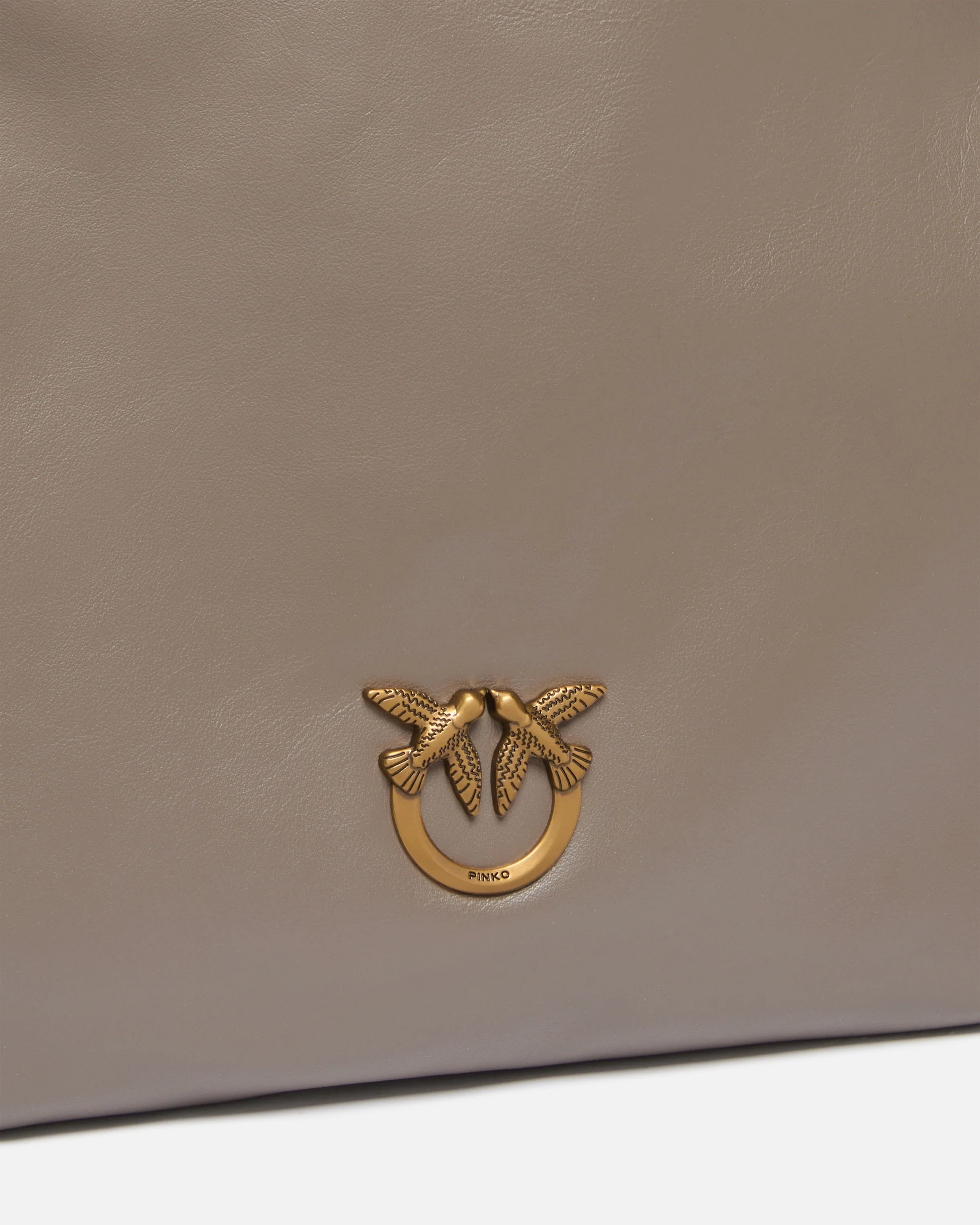 Leather Classic Slouchy Bag featuring a flat and vertical design with a cotton lining. A distinctive accessory that is perfect for endless looks, this bag has a drawstring and side zip to adjust the pouch-style fastening and an inner zip pocket to keep your essentials safe. The design is versatile thanks to the leather strap that allows you to wear it in various ways depending on your preferences. This accessory will give you a refined and on-trend look, while the iconic Love Birds logo embodies the inimitable PINKO style. Activate your PINKO bag: verify the authenticity of your product and access a personalised experience by scanning the Love Birds embroidery on the back of the bag with your smartphone!